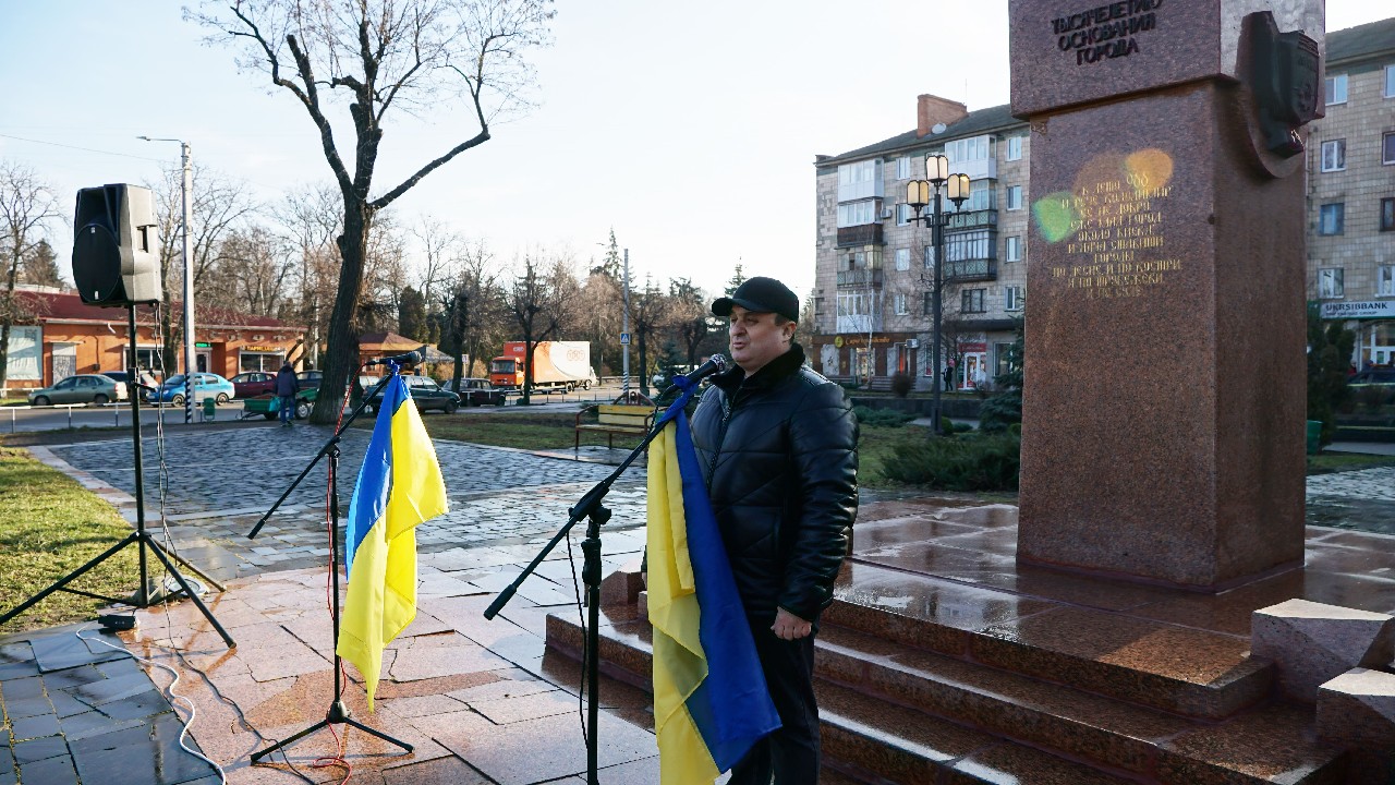 Привітав присутніх на урочистому мітингу голова Лубенської РВА Сергій Сіряченко, далі зі словом до громади звернувся радник міського голови Сергій Сухина, який зауважив: «Сьогодні кожне українське село, кожне велике чи маленьке містечко – це міцна фортеця, де всі ми щоденно боремось за соборність та яку ворог не може перемогти! І ми обов’язково вистоїмо!»