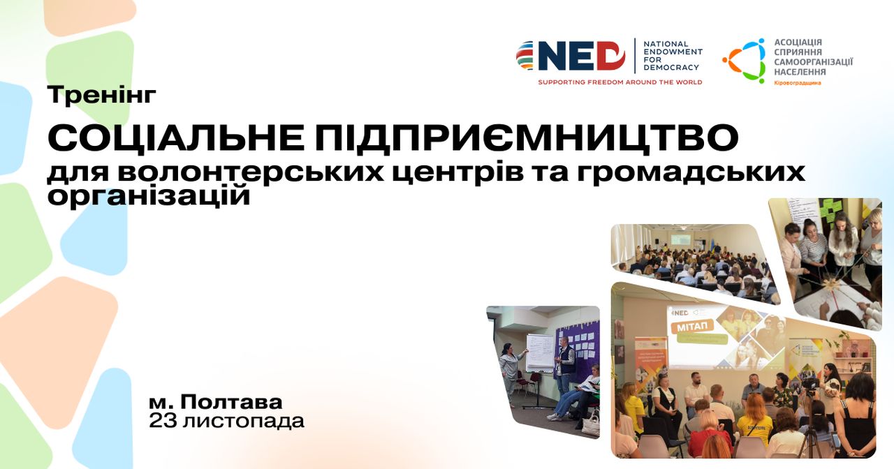 Кіровоградська обласна організація ВГО “Асоціація сприяння самоорганізації населення” запускає серію тренінгів “Соціальне підприємництво для волонтерських центрів та громадських організацій”.