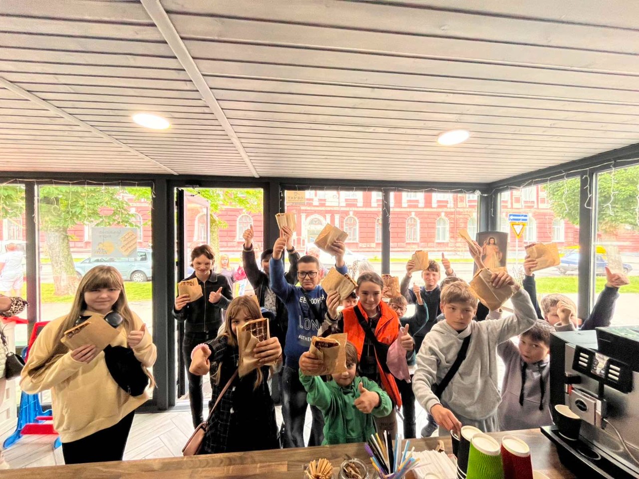 Після годинного екскурсу в історичне минуле нашого краю, директор БФ Карітас Лубни Василь Улішак, гостинно запросив дітей до закладу “PADRE PIZZA”, де вони скуштували смачну випічку та поласували молочним какао.