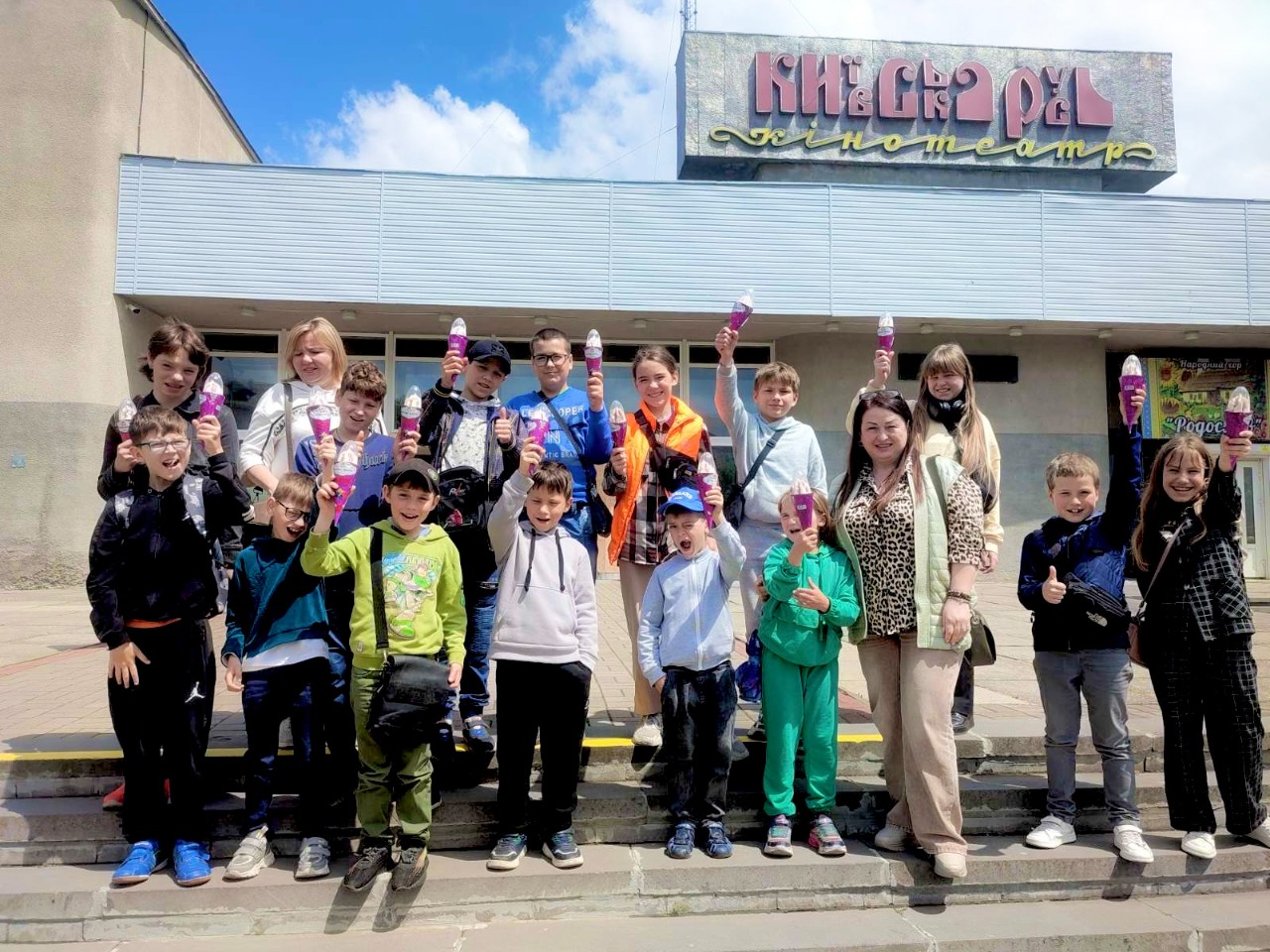 Перепочивши, діти рушили до кінотеатру «Київська Русь», де на них чекав безкоштовний перегляд пізнавального мультфільму під назвою «Переліт», сюжет якого розкриває тему сімейних цінностей, формування взаємоповаги в родинному колі та один до одного зокрема.