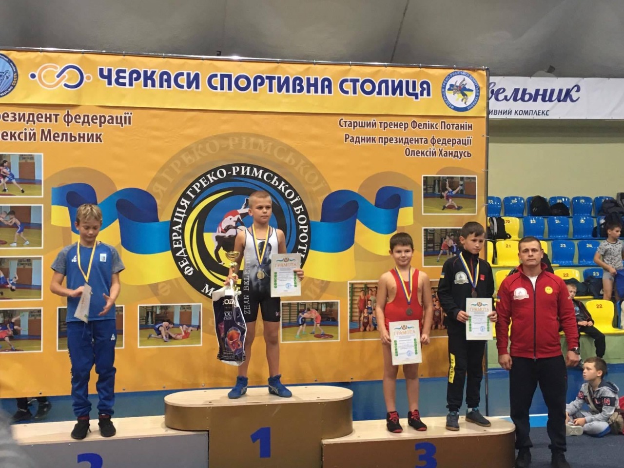 Щойно у м. Черкаси пройшла відкрита першість міста з греко-римської боротьби серед молодших юнаків. У змаганнях взяли участь юні борці з Києва, Черкас, Запоріжжя, Кременчука, Лубен, Гребінки, Золотоноші, Сміли, Вінниці. Всього більше 120 учасників першості, які вели боротьбу у своїх вагових і вікових категоріях. Успішно змагалися юні вихованці тренера-викладача ДЮСШ м. Лубни Романа Смірнова, які всі вибороли бронзові нагороди. Це Богдан Кірієнко (вага до 32 кг), Роман Коломієць (до 52 кг), Артем Бондаренко (до 60 кг) і Дімітрій Пащенко (до 62 кг).