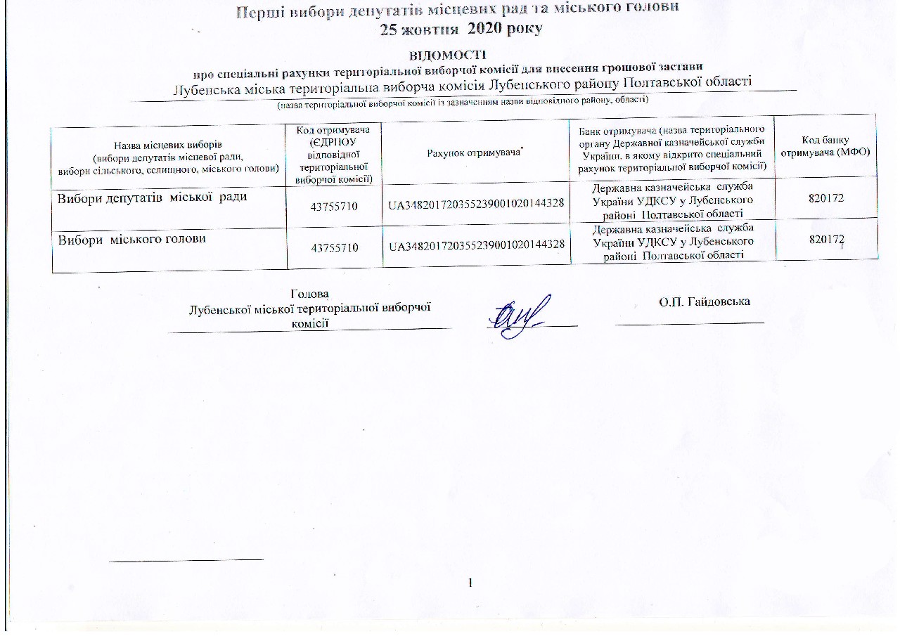 Відомості про спеціальні рахунки територіальної виборчої комісії для внесення грошової застави